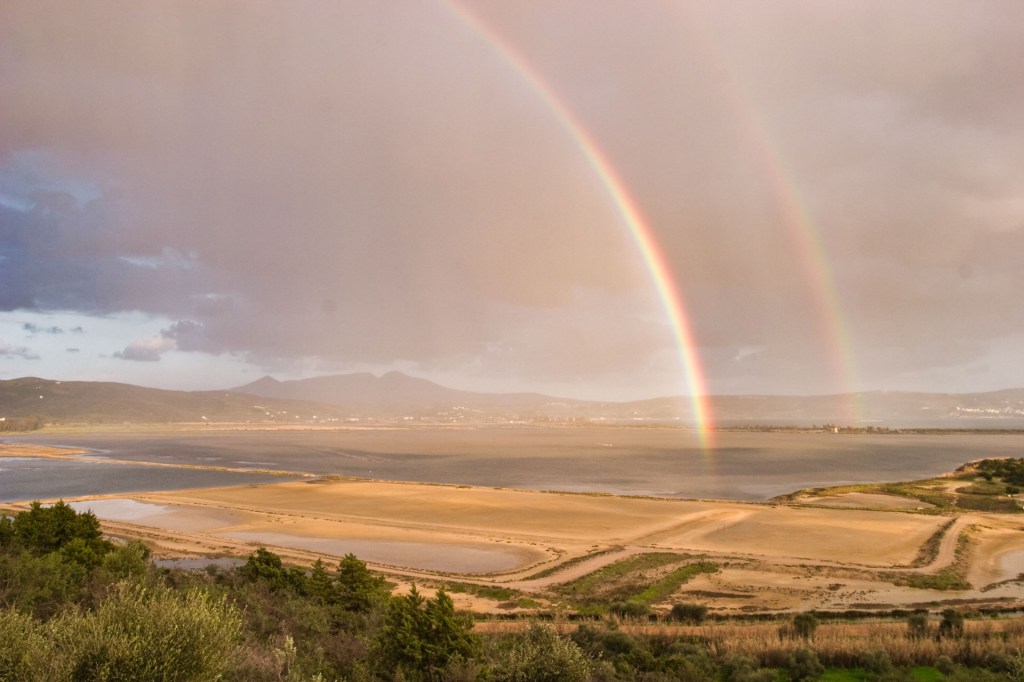 What do Athens and the Gialova Lagoon (Pylos) in the pictures have in common, except for the beautiful rainbows?