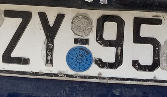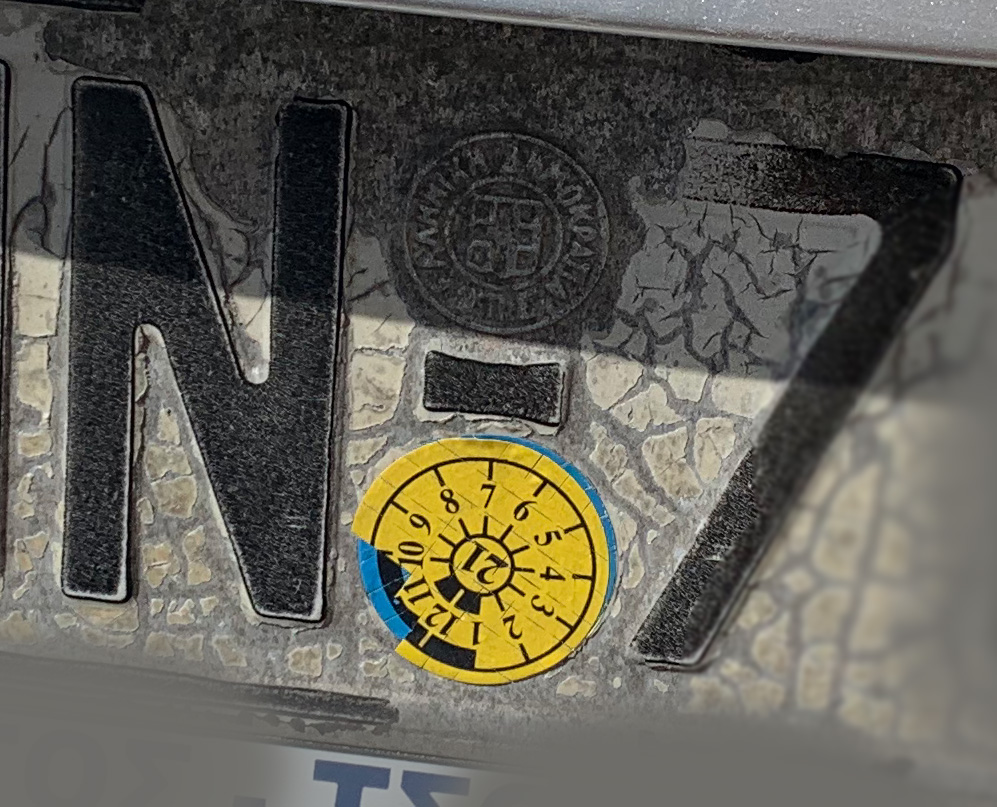 Well, of the 111 cars I checked, only 10 were less than 4 years old (they didn’t have the sticker on the license plate, meaning that they are newer cars). 59 cars were old and had several to many damages on the body, and of these as many as 22 hadn’t taken their MOT certificate! This means that ONE IN FIVE cars circulating right now in Athens has not taken its MOT certificate. See some pics of the MOT stickers here below as proof; all pics were taken today. One of the MOT stickers was even from 2011, meaning that the car passed its last MOT in 2009 and it’s been illegally circulating on the roads of Athens for over 10 years!… And I know that the car is actually driven daily because it belongs to a guy working nearby…