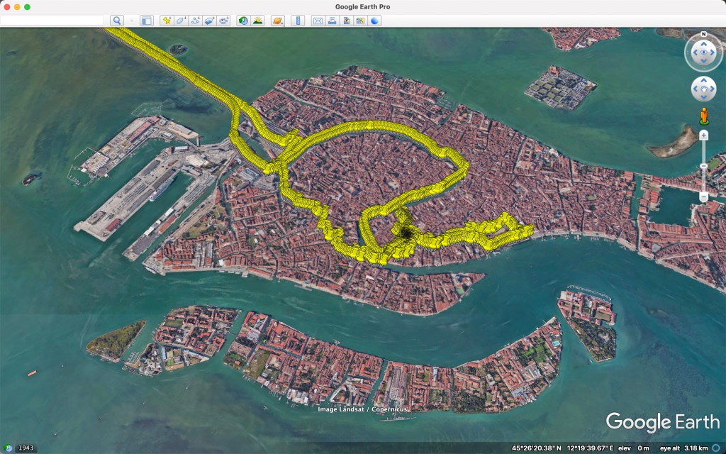 Here is the map with Agis’ course and running stats for Day 9, Venezia-Padova: