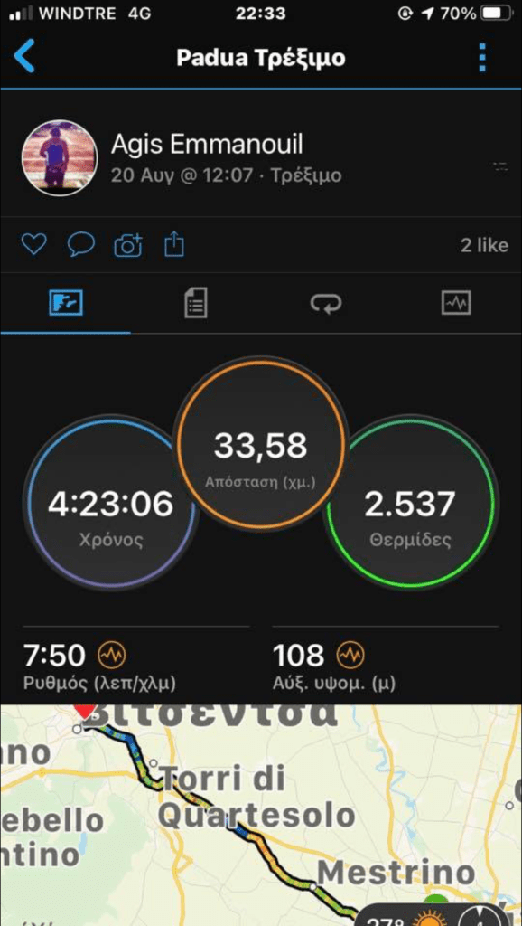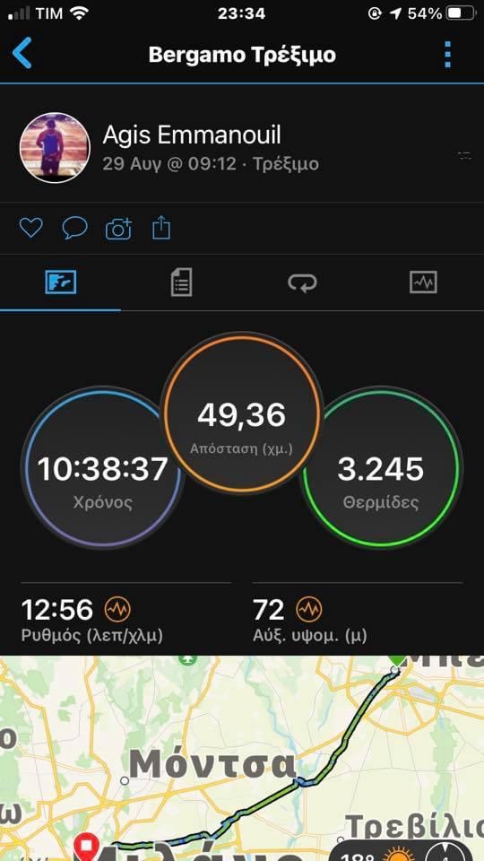 Agis’ fourth day in Italy was the hardest since the beginning in Athens. He ran for almost 12 hours!