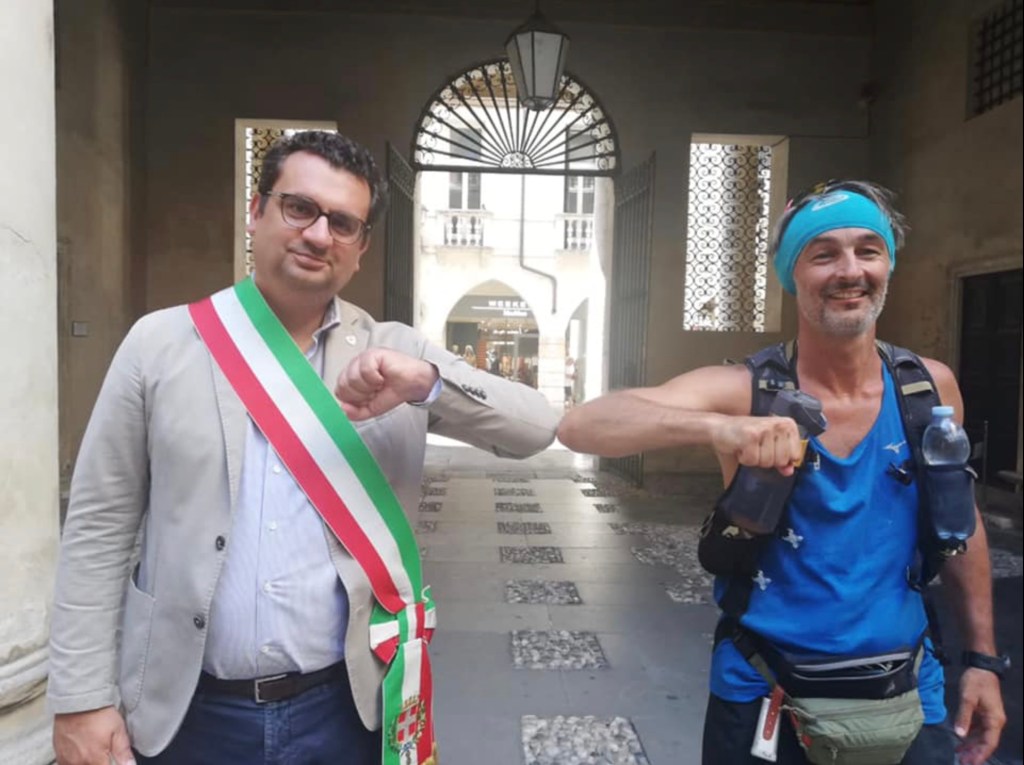 Agis program for Day 28 was to run from Torino to Santhia’, but because of an injury (to his right leg this time) he had to end the day along the way in Crescentino, after 44km.