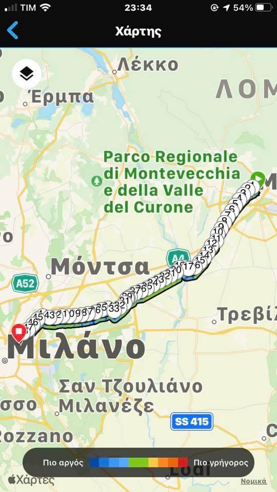 Altogether, Agis ran the 566,6KM long Italian part of the Athens-Glasgow 2421KM Climate Run in 13 days, for a total of 89 hours and 31 minutes. Scroll down to the very end of the post to see the summary statistics of the Air Quality that Agis met in Italy.