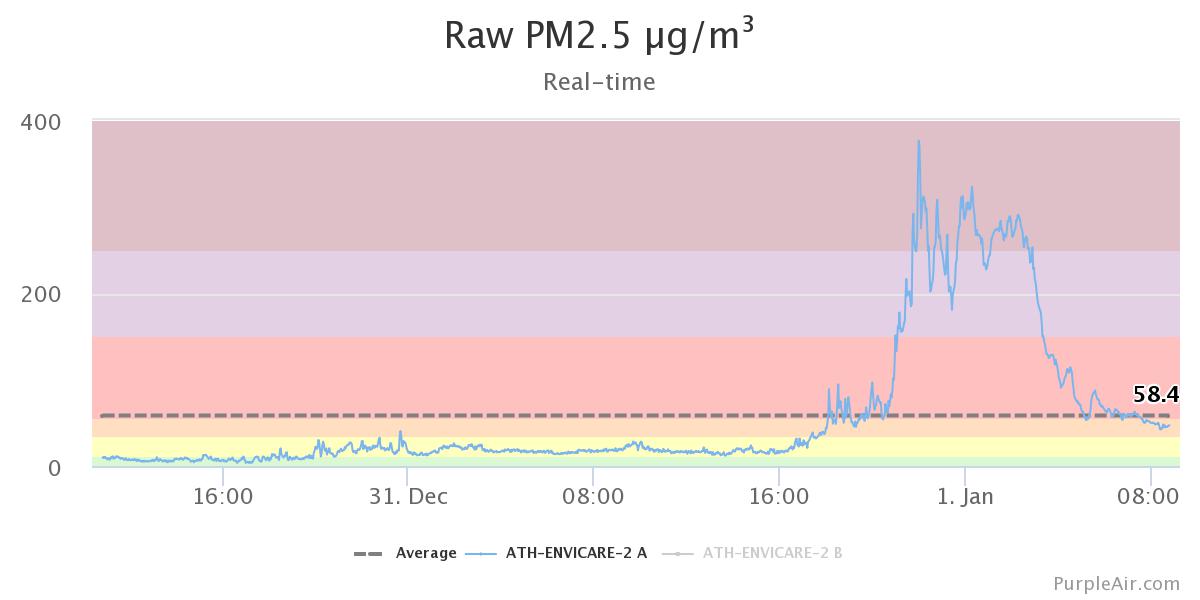 PS 1. Have a good look at the Purple Air map of Europe below. See the three green dots in the Aegean? Tinos, Syros and Skyros. While the rest of Greece and Europe were engulfed in the wood and fireworks smoke last night, those three islands enjoyed a perfectly clean air. I wrote it already and will remind it again and again: if we suddenly chose to stop burning wood and fossil fuels (diesel, gasoline, etc.), we would enjoy the same clean air also in the Greek mainland, overnight! Wouldn’t this be so great?